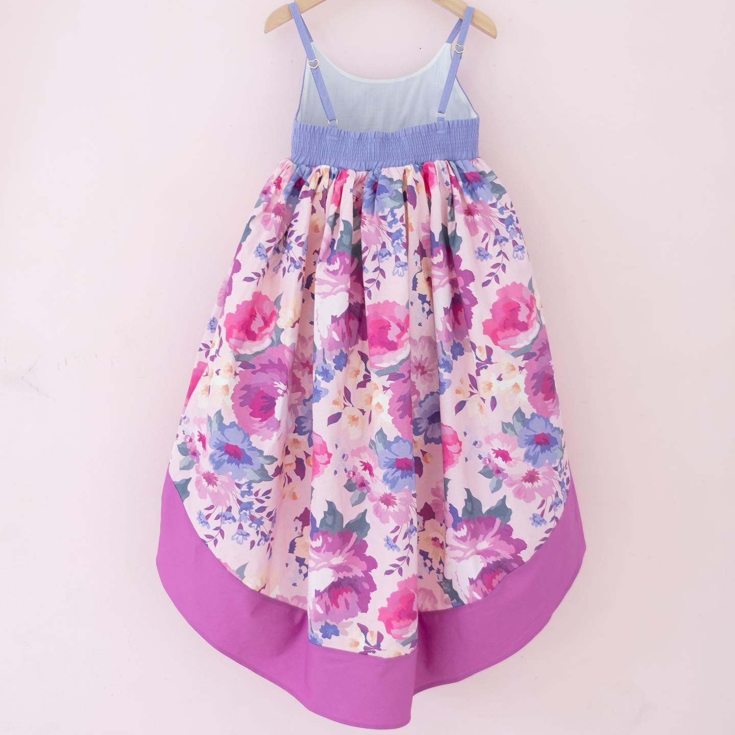 Beautiful, soft and completely show stopping.  This dress is perfect for all those Spring/Summer photo sessions. Gorgeous floral print skirt with bold coordinating color block hem. The bodice is made from soft classic cotton.
